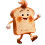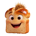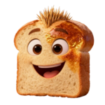 Husch und weg, das Toastbrot liegt auf ein Brotbrett und wird geschnitten. Drei Toastscheiben wollen nicht gegessen werden und eilen davon.